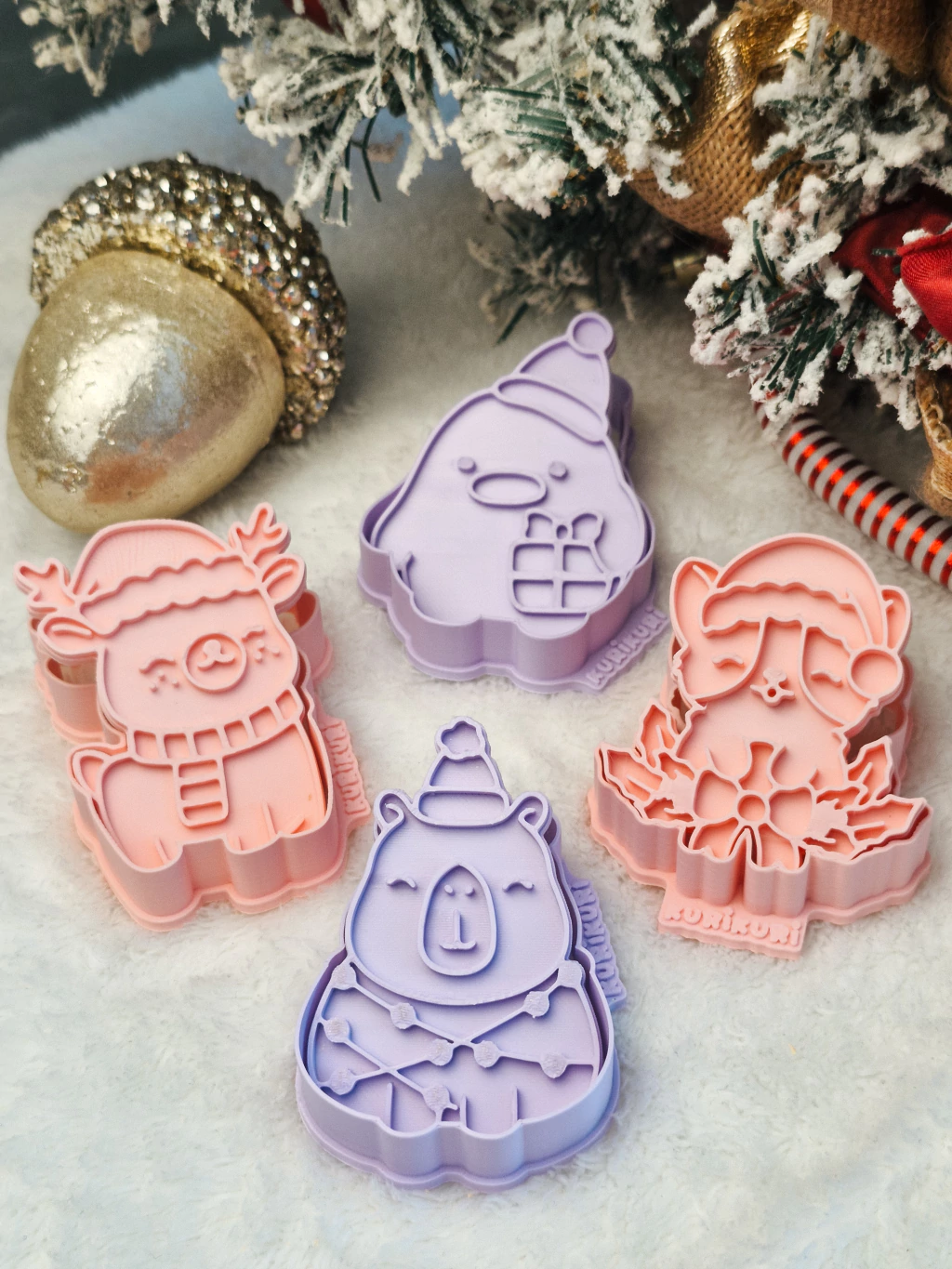 Este kit contém 4 conjuntos de cortadores + carimbos, perfeitos para decorar biscoitos com detalhes encantadores de animais típicos do Natal.